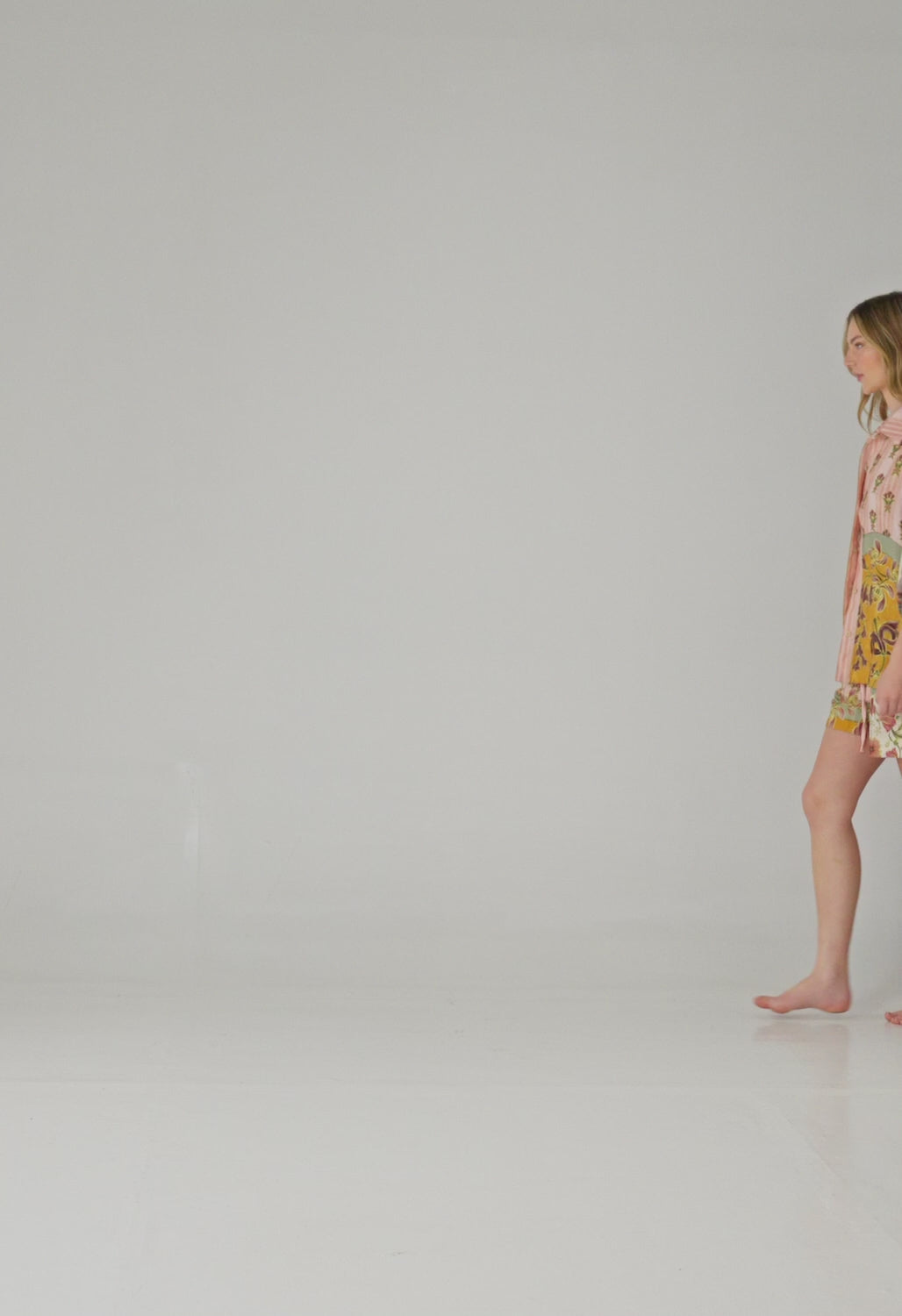 La camisa Chrissy es una prenda fresca y llamativa diseñada con una elegancia natural. Sus mangas tres cuartos y el cierre frontal con botones le dan una silueta relajada, mientras que el vibrante estampado le aporta un toque de la inspiración poética de Aura. Hecha en Colombia, esta versátil camisa es perfecta para usar sola o en capas.